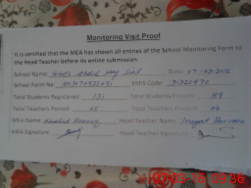 | EMIS Code: 31320970 | Name of School: GGES ABDUL HAQ SIAL | |||