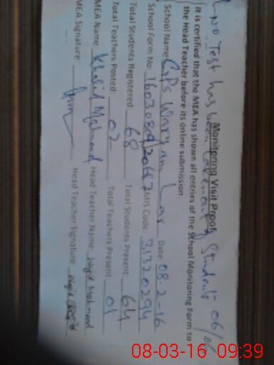 | Name: MU**** KH**** Designation: (School Headmaster's/Headmistress's) PST/PTC/JV Phone/Cell Number: 03**** |