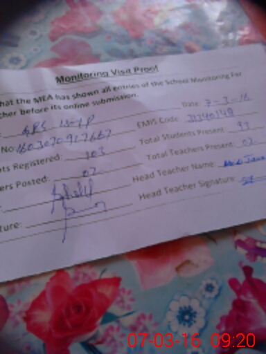 | Certified that this School was Inspected by the Undersigned MEA/DMO Today and the Information Stated Above is as Per Record. | |||||