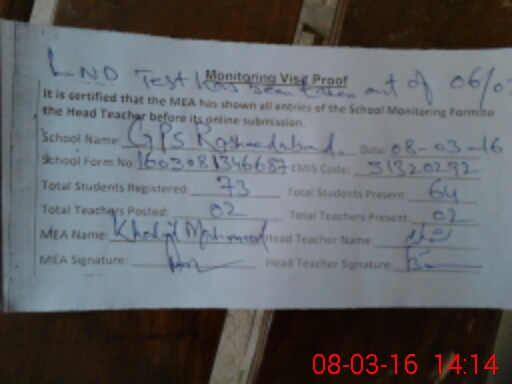 | Certified that this School was Inspected by the Undersigned MEA/DMO Today and the Information Stated Above is as Per Record. | |||||