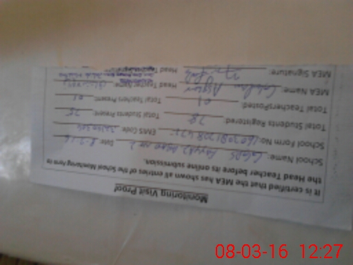 | Certified that this School was Inspected by the Undersigned MEA/DMO Today and the Information Stated Above is as Per Record. | |||||