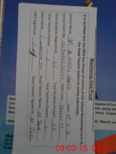 | EMIS Code: 39220179 | Name of School: GPS NIKKI SHAFI P/O SHAFI ARIFWALA | |||