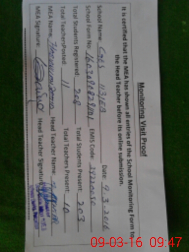 | Certified that this School was Inspected by the Undersigned MEA/DMO Today and the Information Stated Above is as Per Record. | |||||