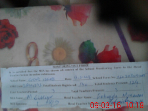 | Attendance Register | Head Teacher | MEA with School | Visit Proof |