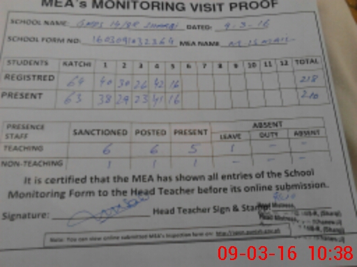 | Certified that this School was Inspected by the Undersigned MEA/DMO Today and the Information Stated Above is as Per Record. | |||||