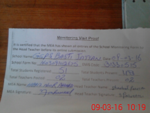 | Certified that this School was Inspected by the Undersigned MEA/DMO Today and the Information Stated Above is as Per Record. | |||||