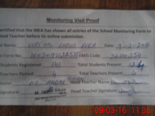 | EMIS Code: 36110354 | Name of School: GGPS MC GHOUS PURA | |||