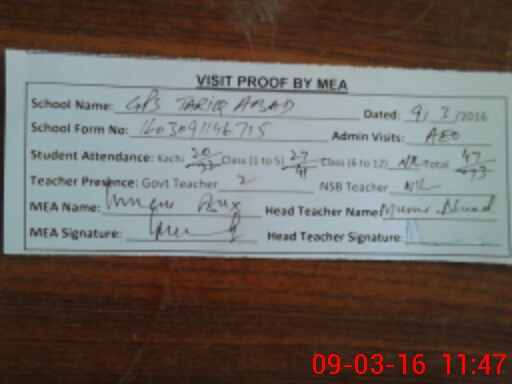 | EMIS Code: 32430085 | Name of School: GPS TARIQ ABAD | |||