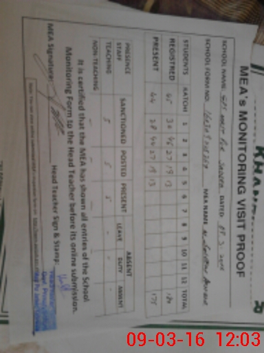 | Attendance Register | Head Teacher | MEA with School | Visit Proof |