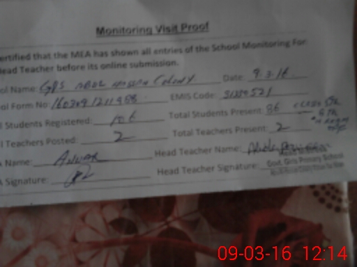 | EMIS Code: 31330521 | Name of School: GGPS ABUL HASSAN COLONY | |||