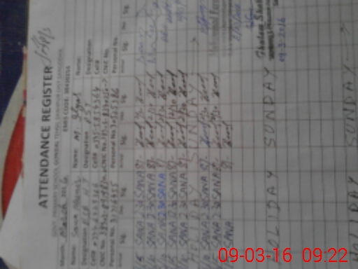 | CNIC | Full Name | Designation | R/C | Absence During Last Calender Month |