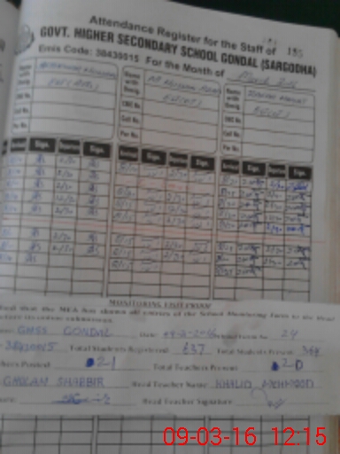 | EMIS Code: 38430015 | Name of School: GHSS GONDAL SARGODHA | |||