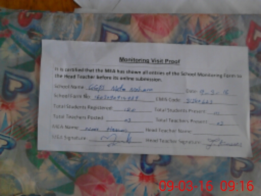 | Attendance Register | Head Teacher | MEA with School | Visit Proof |