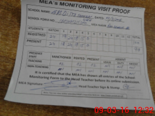 | Attendance Register | Head Teacher | MEA with School | Visit Proof |