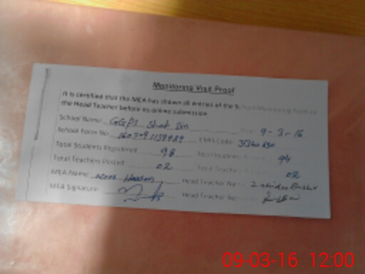 | Attendance Register | Head Teacher | MEA with School | Visit Proof |