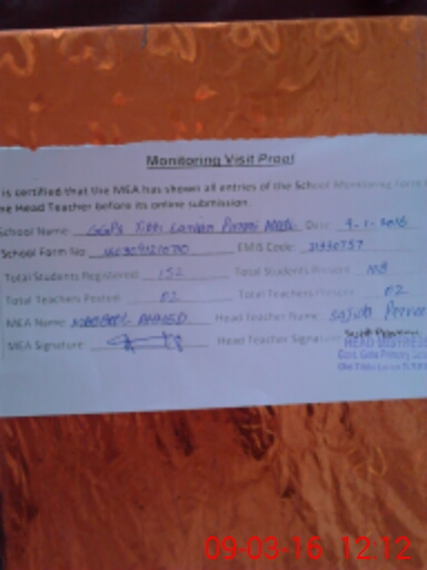 | Attendance Register | Head Teacher | MEA with School | Visit Proof |