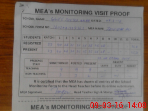 | Certified that this School was Inspected by the Undersigned MEA/DMO Today and the Information Stated Above is as Per Record. | |||||