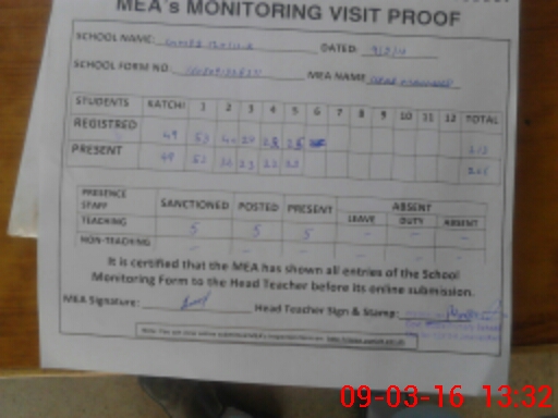 | Attendance Register | Head Teacher | MEA with School | Visit Proof |