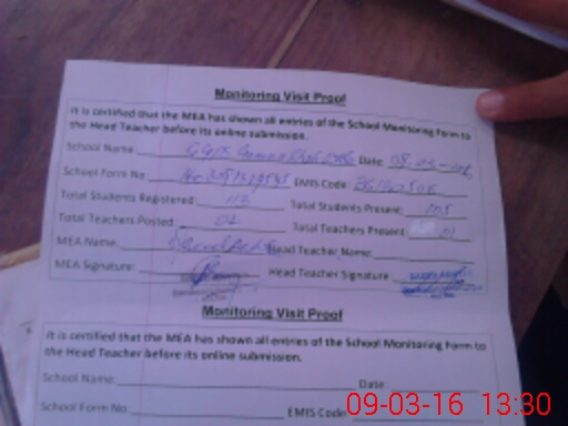 | Attendance Register | Head Teacher | MEA with School | Visit Proof |