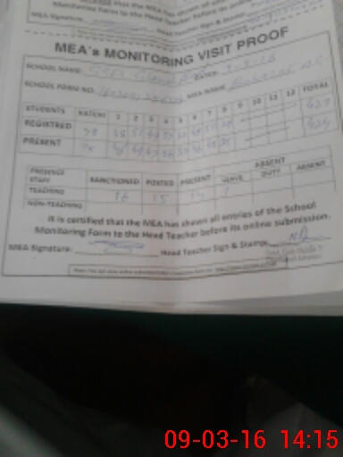 | Certified that this School was Inspected by the Undersigned MEA/DMO Today and the Information Stated Above is as Per Record. | |||||