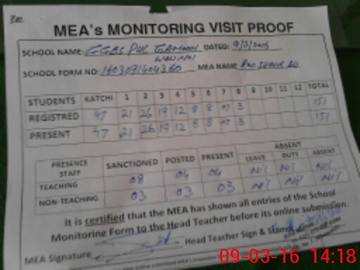 | Certified that this School was Inspected by the Undersigned MEA/DMO Today and the Information Stated Above is as Per Record. | |||||