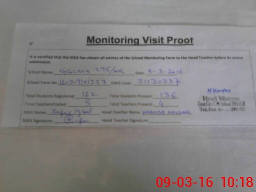 | Attendance Register | Head Teacher | MEA with School | Visit Proof |