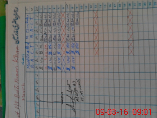 | CNIC | Full Name | Designation | R/C | Absence During Last Calender Month |
