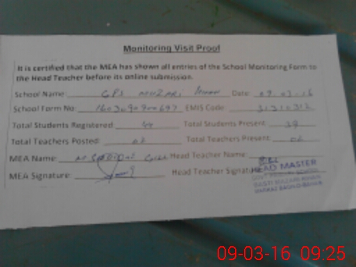 | EMIS Code: 31310312 | Name of School: GPS MAZARI KHAN | |||