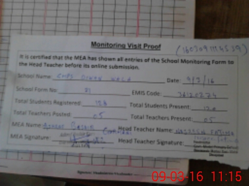 | Attendance Register | Head Teacher | MEA with School | Visit Proof |