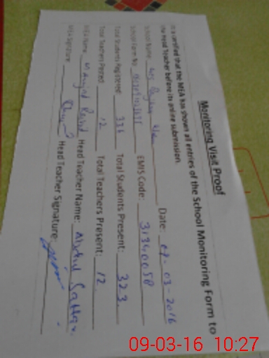 | Certified that this School was Inspected by the Undersigned MEA/DMO Today and the Information Stated Above is as Per Record. | |||||