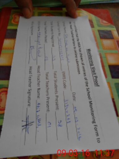 | Attendance Register | Head Teacher | MEA with School | Visit Proof |