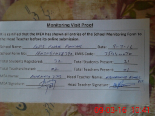 | EMIS Code: 35440070 | Name of School: GPS CHAK POWAR | |||
