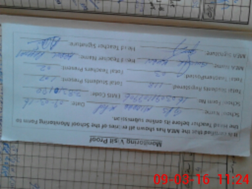| Attendance Register | Head Teacher | MEA with School | Visit Proof |