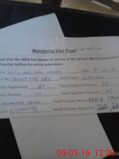 | Certified that this School was Inspected by the Undersigned MEA/DMO Today and the Information Stated Above is as Per Record. | |||||