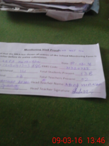 | Attendance Register | Head Teacher | MEA with School | Visit Proof |