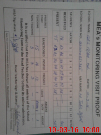 | Monitoring Date: 10-03-2016 | Start Time: 10-03-2016 08:51 AM | End Time: 10-03-2016 10:02 AM | Name of MEA: M.Ta**** Iq**** (S**** | |