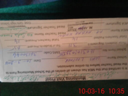 | Certified that this School was Inspected by the Undersigned MEA/DMO Today and the Information Stated Above is as Per Record. | |||||