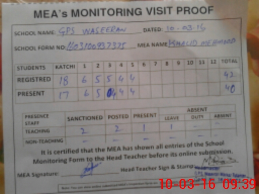| EMIS Code: 36430477 | Name of School: GPS WASEERAN P/O TULAMBA | |||