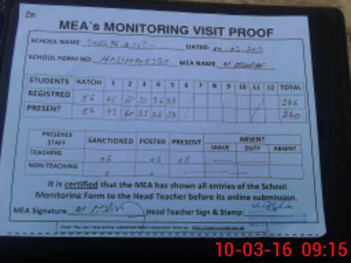 | Certified that this School was Inspected by the Undersigned MEA/DMO Today and the Information Stated Above is as Per Record. | |||||