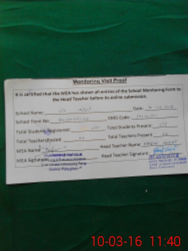 | Certified that this School was Inspected by the Undersigned MEA/DMO Today and the Information Stated Above is as Per Record. | |||||
