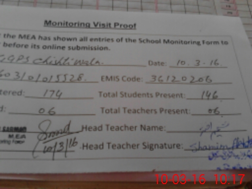 | Attendance Register | Head Teacher | MEA with School | Visit Proof |
