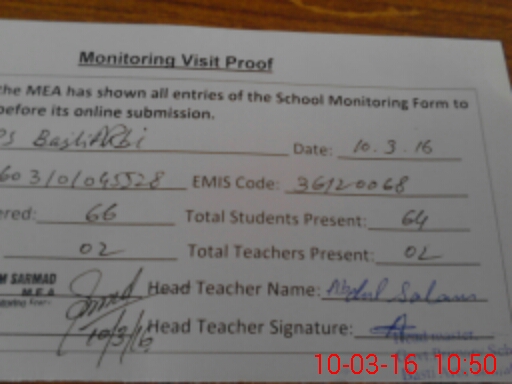 | Attendance Register | Head Teacher | MEA with School | Visit Proof |