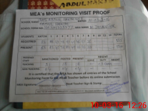 | Certified that this School was Inspected by the Undersigned MEA/DMO Today and the Information Stated Above is as Per Record. | |||||