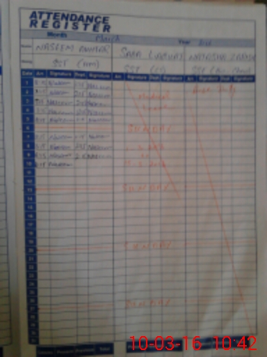 | CNIC | Full Name | Designation | R/C | Absence During Last Calender Month |