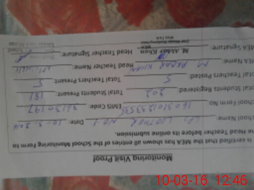 | Certified that this School was Inspected by the Undersigned MEA/DMO Today and the Information Stated Above is as Per Record. | |||||