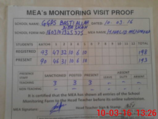 | Certified that this School was Inspected by the Undersigned MEA/DMO Today and the Information Stated Above is as Per Record. | |||||