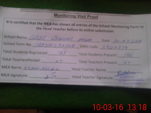 | Certified that this School was Inspected by the Undersigned MEA/DMO Today and the Information Stated Above is as Per Record. | |||||