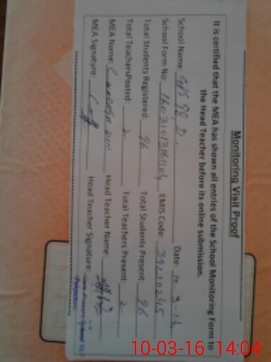 | Certified that this School was Inspected by the Undersigned MEA/DMO Today and the Information Stated Above is as Per Record. | |||||