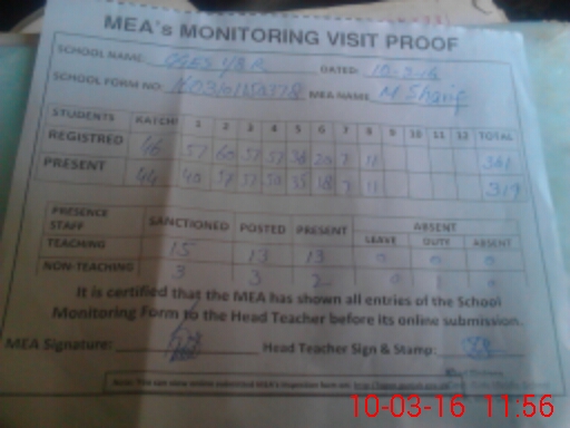 | Attendance Register | Head Teacher | MEA with School | Visit Proof |