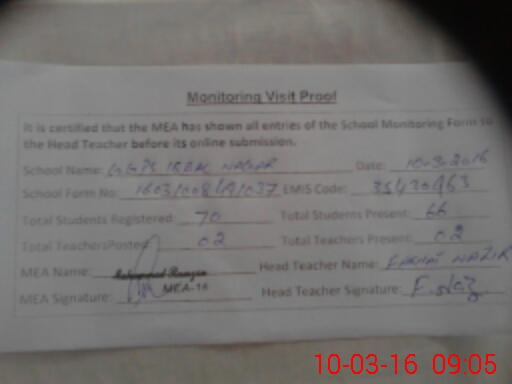 | EMIS Code: 35430963 | Name of School: GGPS IQBAL NAGAR | |||